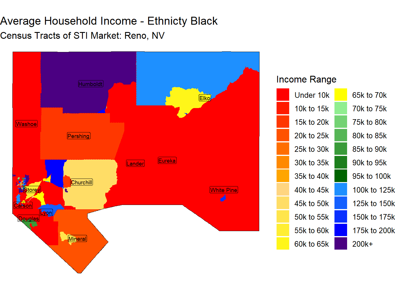 With an Average Household Income for those head of householders identifying as Non-Hispanic Black of $99,162 the Reno, NV market ranks 32nd across STI Markets.