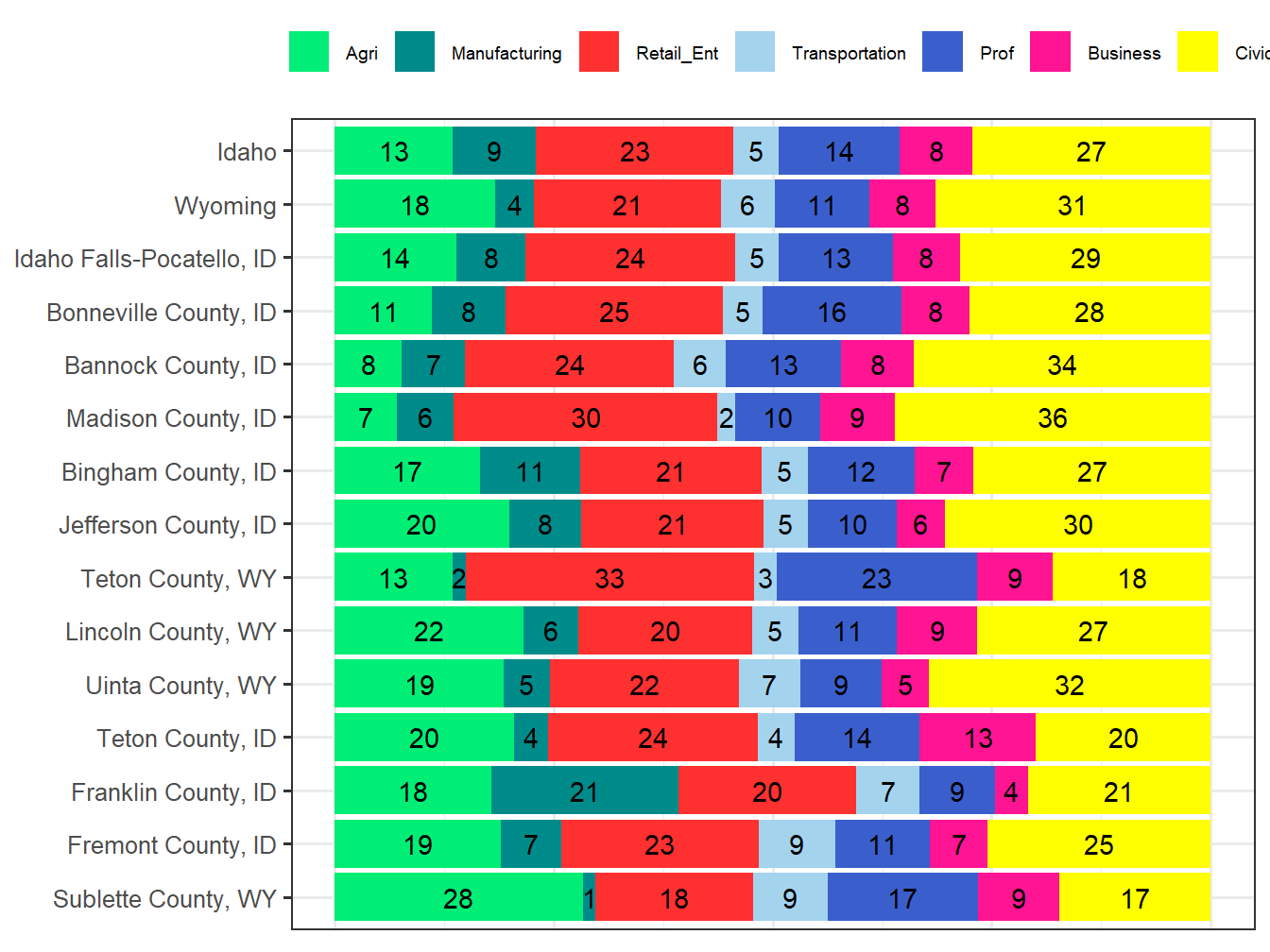 The 13 Industry include the following “Agri”, “Manufacturing”, “Retail_Wholesale”, “Transportation”, “Information”, “FIN_I_RE”, “Professional”, “Management”, “Admin_Waste”, “Educational”, “Entertain”, “Other_Prof”, “Public_admin”.