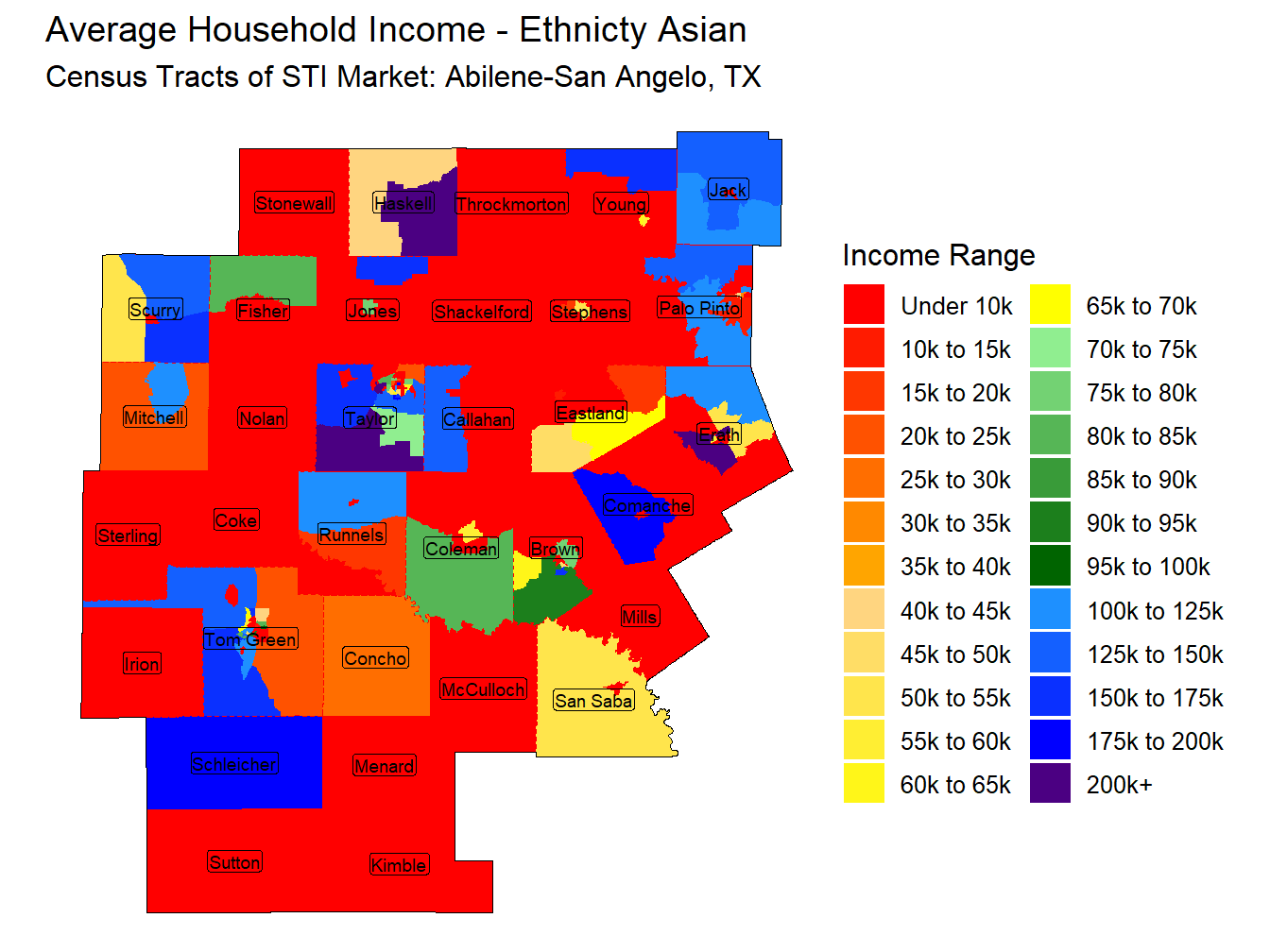 With an Average Household Income for those head of householders identifying as Non-Hispanic Asian of $94,262 the Abilene-San Angelo, TX market ranks 152nd across STI Markets.