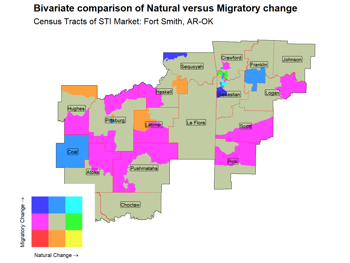 Figure 4: Bivariate Thematic Map of Natural versus Migratory change