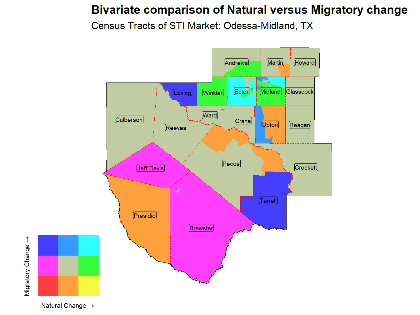 Figure 4: Bivariate Thematic Map of Natural versus Migratory change
