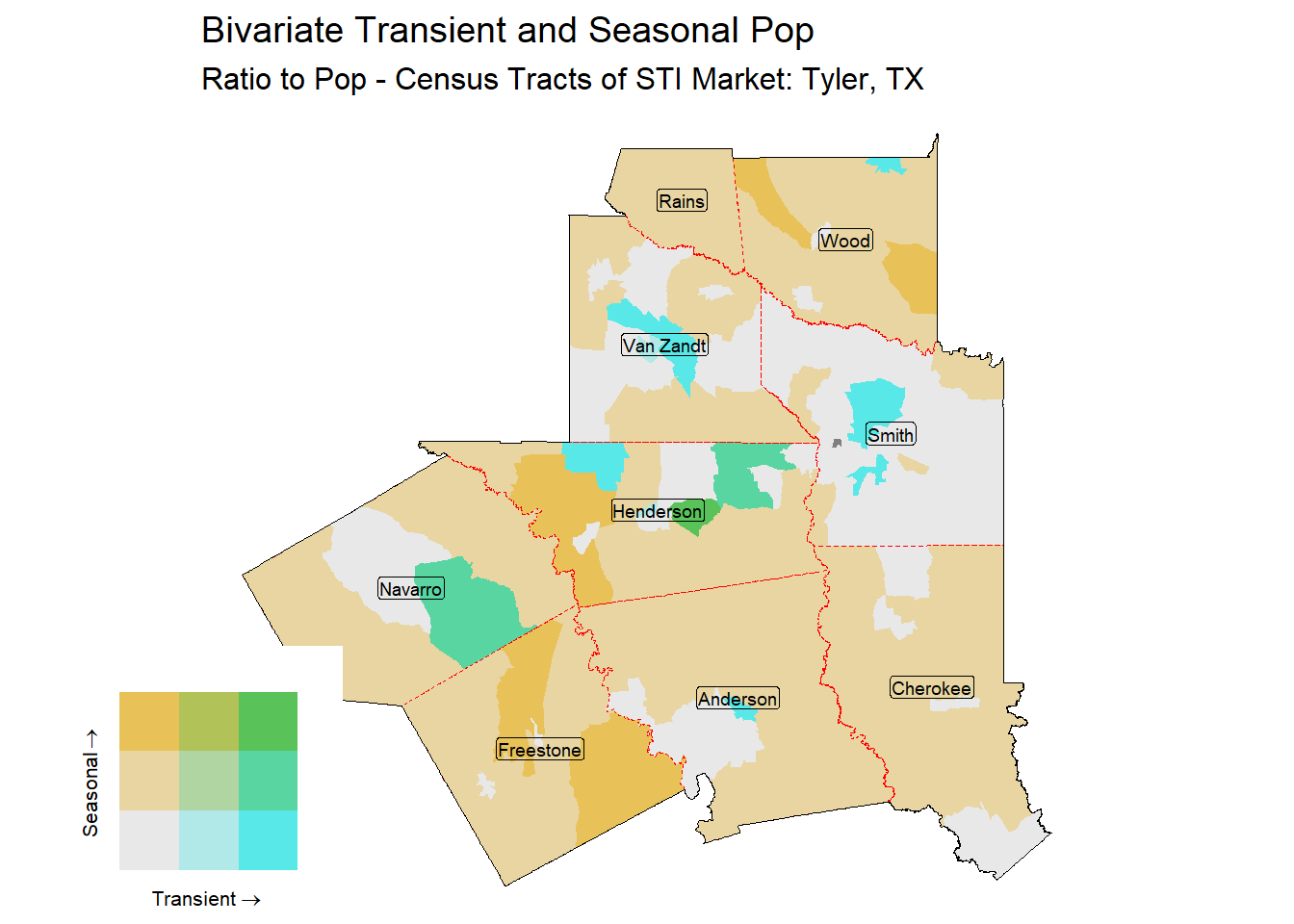 Figure 10: Bivariate Tematic of Seasonal & Transient Pop - Census Tract