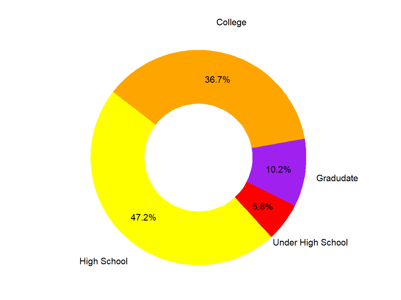 This ranking considers the 5.8% of those over 25 years old with an Under High School level of educational attainment compared with 36.7% and 10.2% that have attained a college and graduate level of education, respectively.