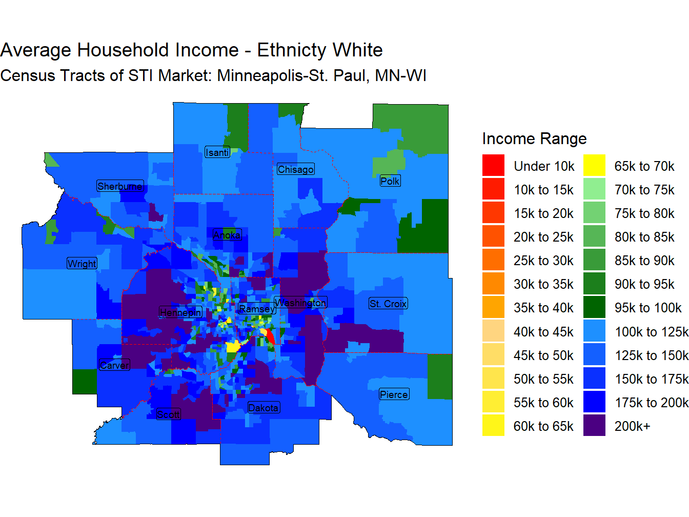 With an Average Household Income for those head of householders Non-Hispanic White of $144,951 the Minneapolis-St. Paul, MN-WI market ranks 17th across STI Markets.