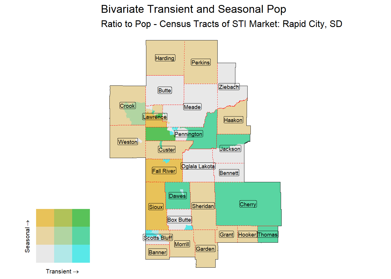Figure 10: Bivariate Tematic of Seasonal & Transient Pop - Census Tract