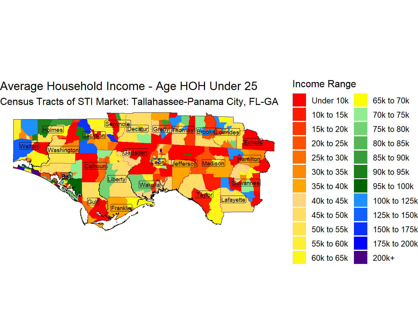 With an Average Household Income for those head of householders aged under 25 of $56,048 the Tallahassee-Panama City, FL-GA market ranks 130th across STI Markets.