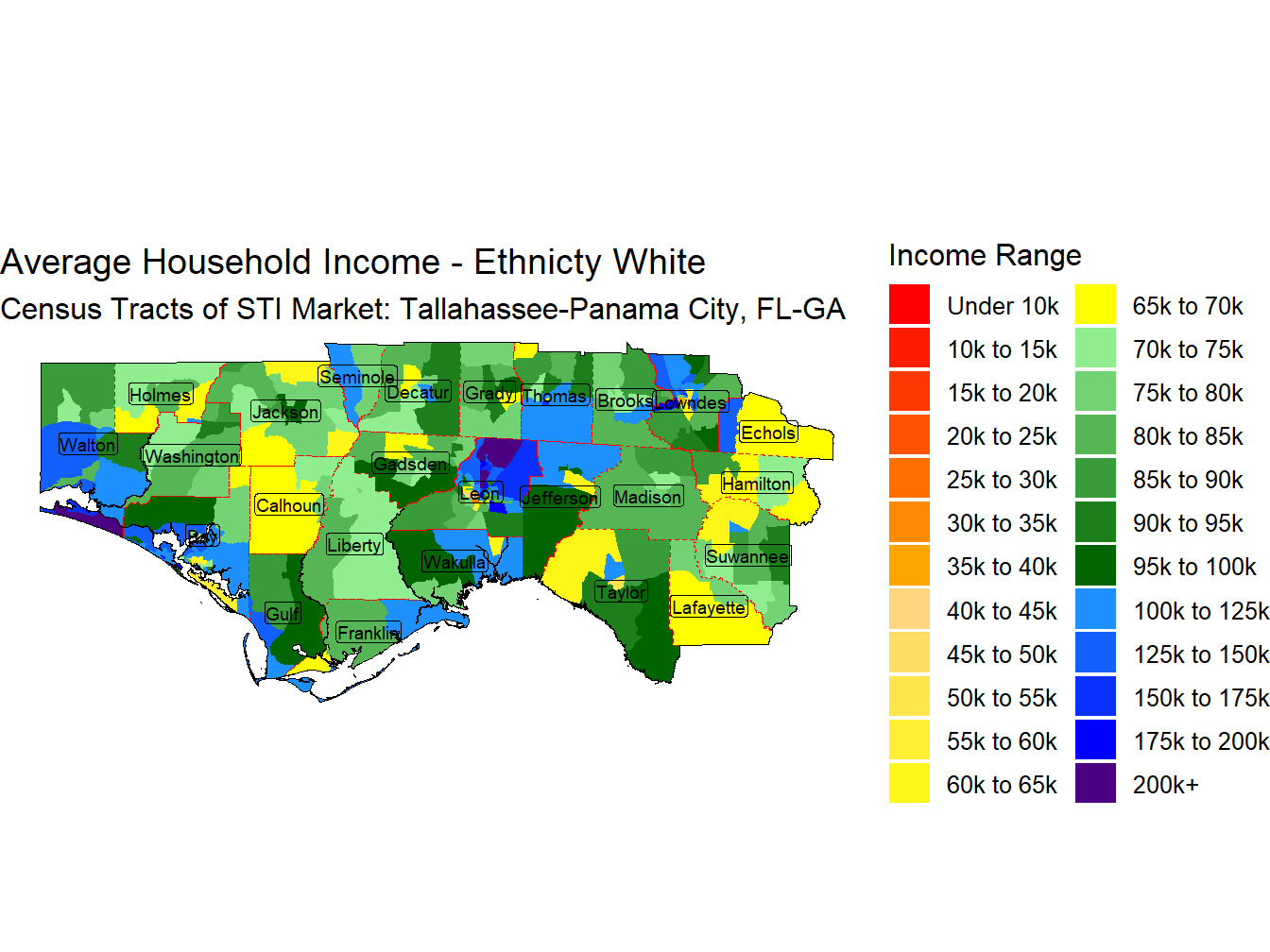 With an Average Household Income for those head of householders Non-Hispanic White of $105,430 the Tallahassee-Panama City, FL-GA market ranks 97th across STI Markets.
