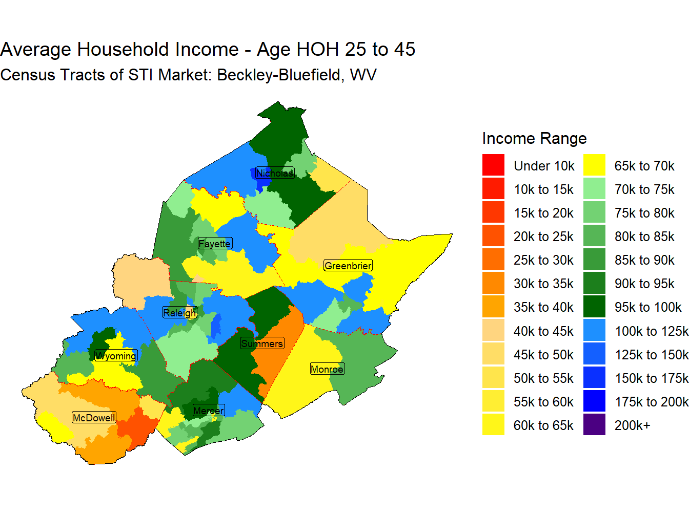 With an Average Household Income for those head of householders aged 25 to 45 of $81,810 the Beckley-Bluefield, WV market ranks 163rd across STI Markets.
