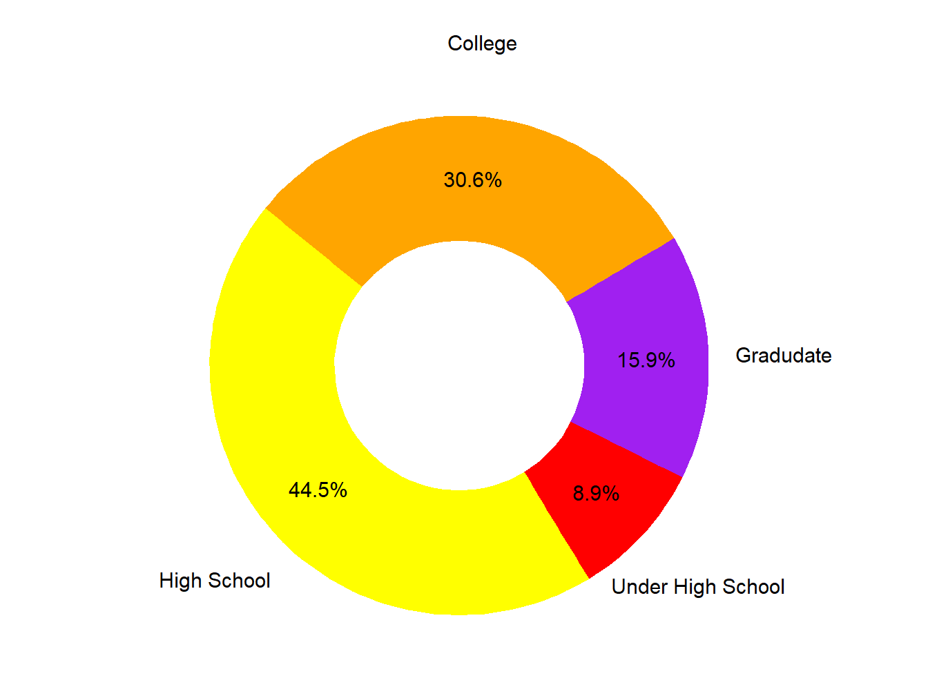 College here includes those with Associate and Bachelor degrees. While Graduate includes those with Masters degrees, Professional degrees, and Doctorates.