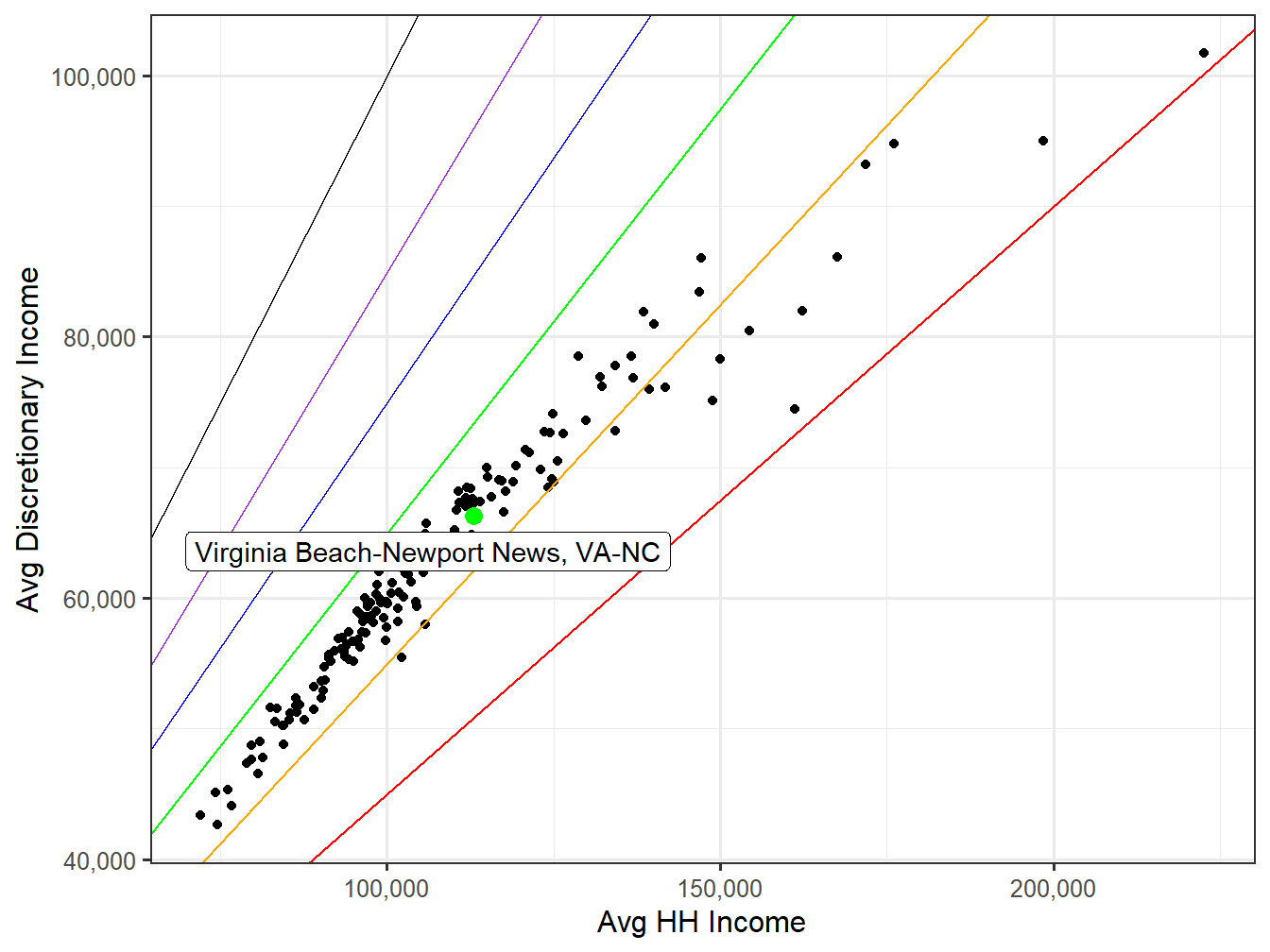 With an Average Household Income for those head of householders aged 25 to 45 of $112,267 the Virginia Beach-Newport News, VA-NC market ranks 74th across STI Markets.