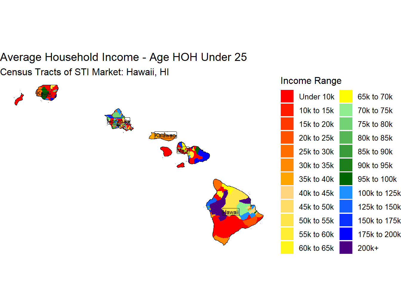 With an Average Household Income for those head of householders aged under 25 of $90,046 the Hawaii, HI market ranks 11th across STI Markets.