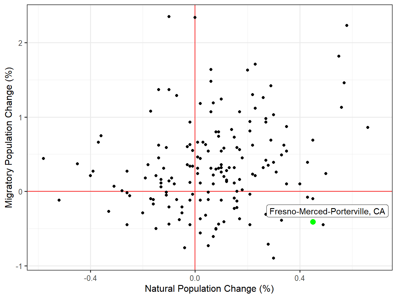 With a 2 Year Compound Annual Growth Rate (CAGR) of 0.21% the Fresno-Merced-Porterville, CA Market is growing. It ranks 105th in 2 year population change across all STI Markets.