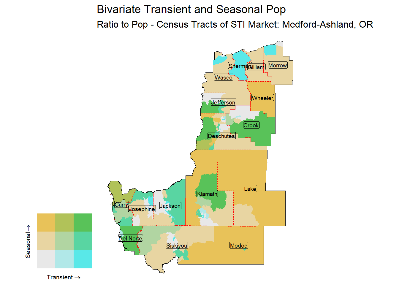 Figure 10: Bivariate Tematic of Seasonal & Transient Pop - Census Tract