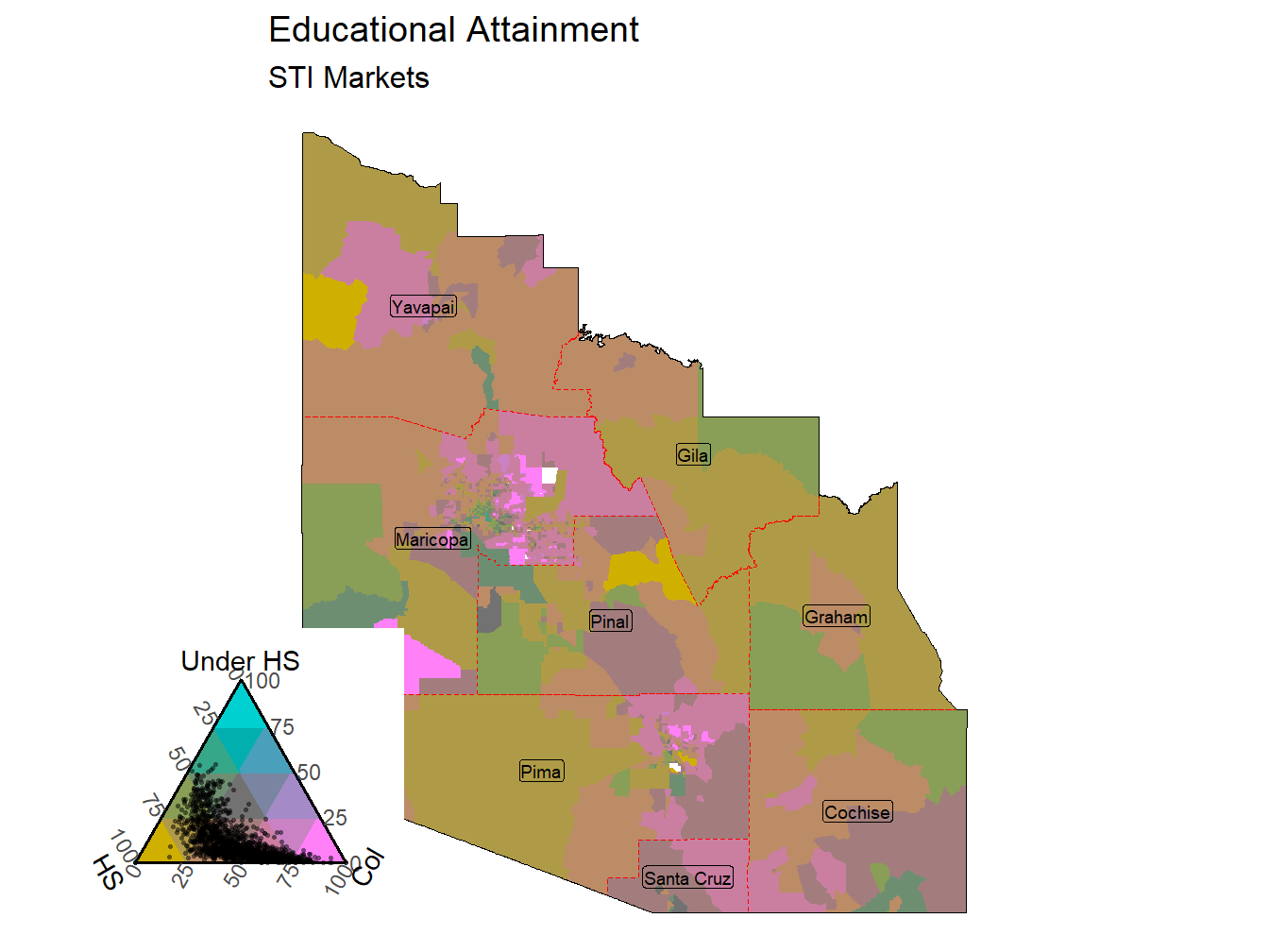 The Phoenix-Mesa-Tucson, AZ market ranks 47th in Educational Attainment across the 167 STI Markets.