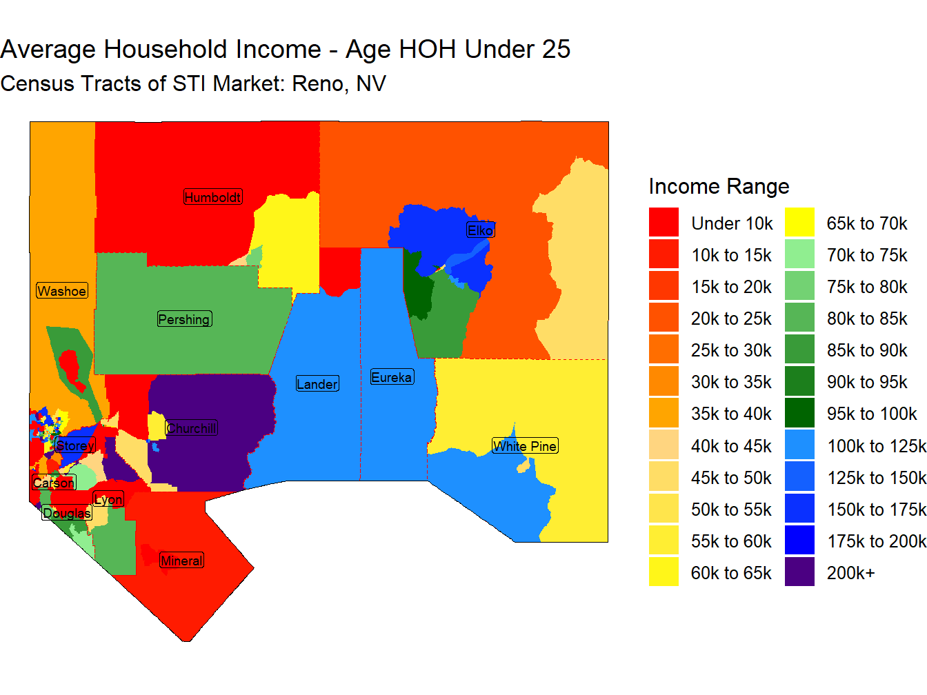 With an Average Household Income for those head of householders aged under 25 of $87,469 the Reno, NV market ranks 13th across STI Markets.