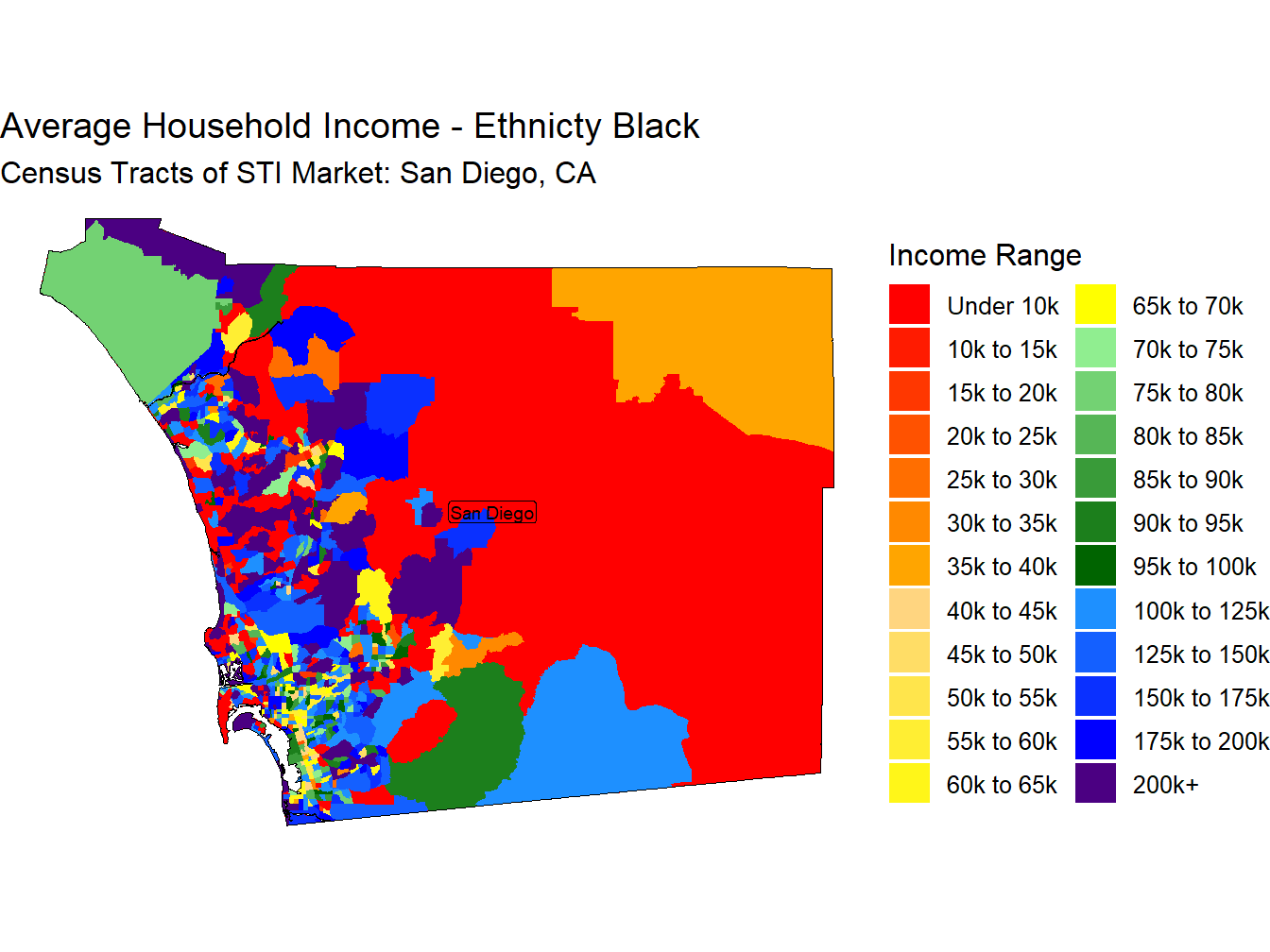 With an Average Household Income for those head of householders identifying as Non-Hispanic Black of $120,672 the San Diego, CA market ranks 12th across STI Markets.
