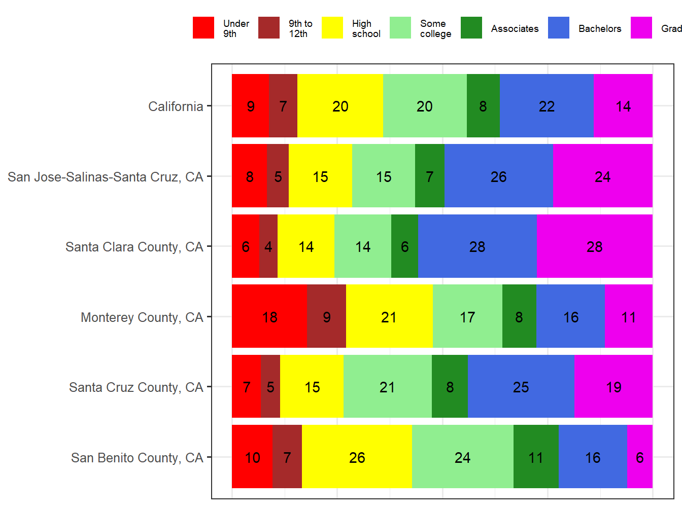 The San Jose-Salinas-Santa Cruz, CA market ranks 5th in Educational Attainment across the 167 STI Markets.