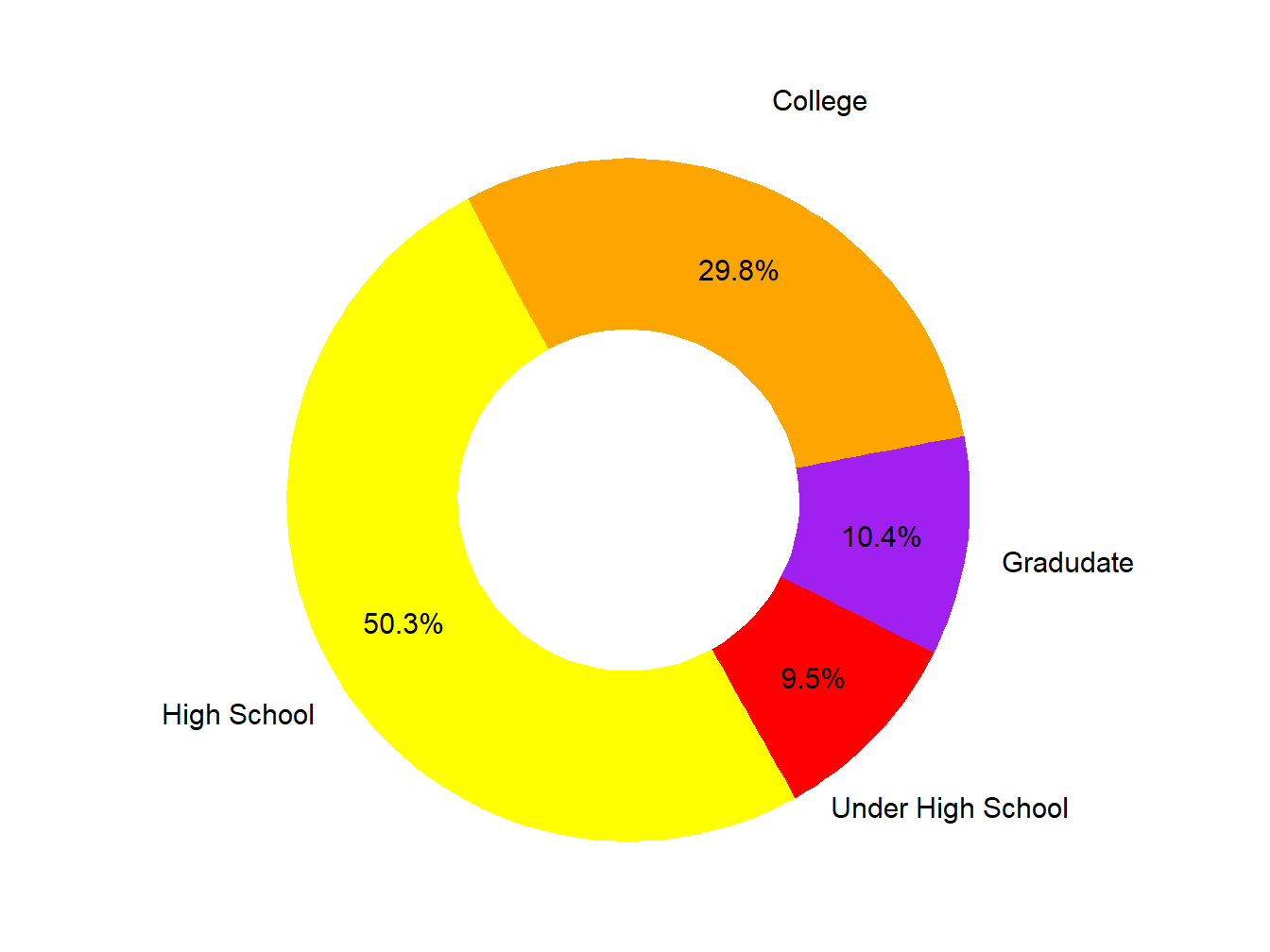 This ranking considers the 9.5% of those over 25 years old with an Under High School level of educational attainment compared with 29.8% and 10.4% that have attained a college and graduate level of education, respectively.