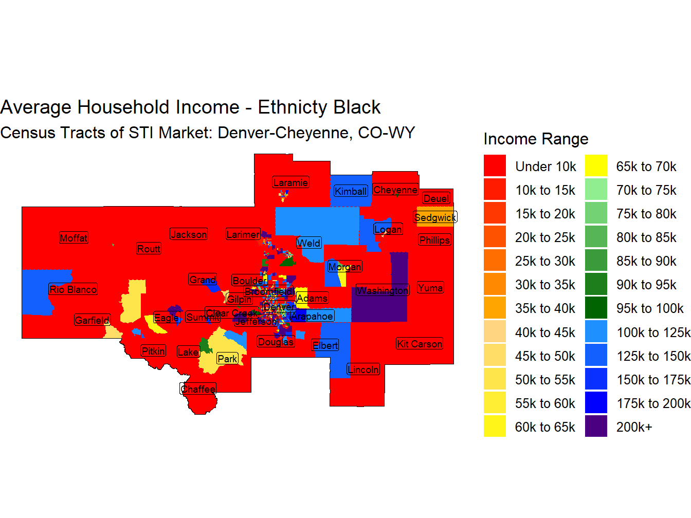 With an Average Household Income for those head of householders identifying as Non-Hispanic Black of $111,178 the Denver-Cheyenne, CO-WY market ranks 16th across STI Markets.