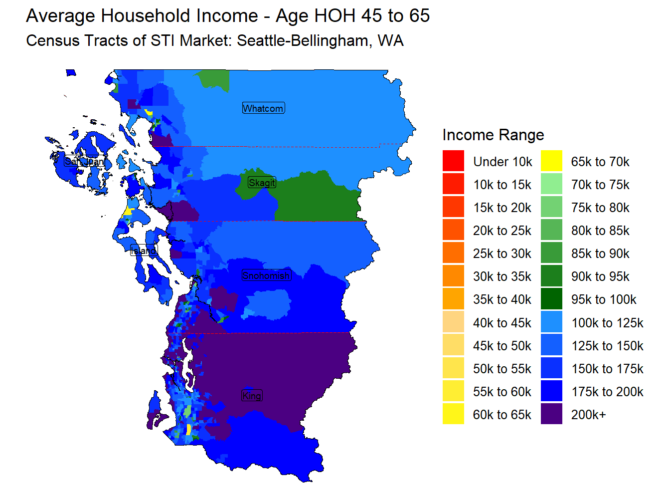 With an Average Household Income for those head of householders aged 25 to 45 of $192,154 the Seattle-Bellingham, WA market ranks 3rd across STI Markets.