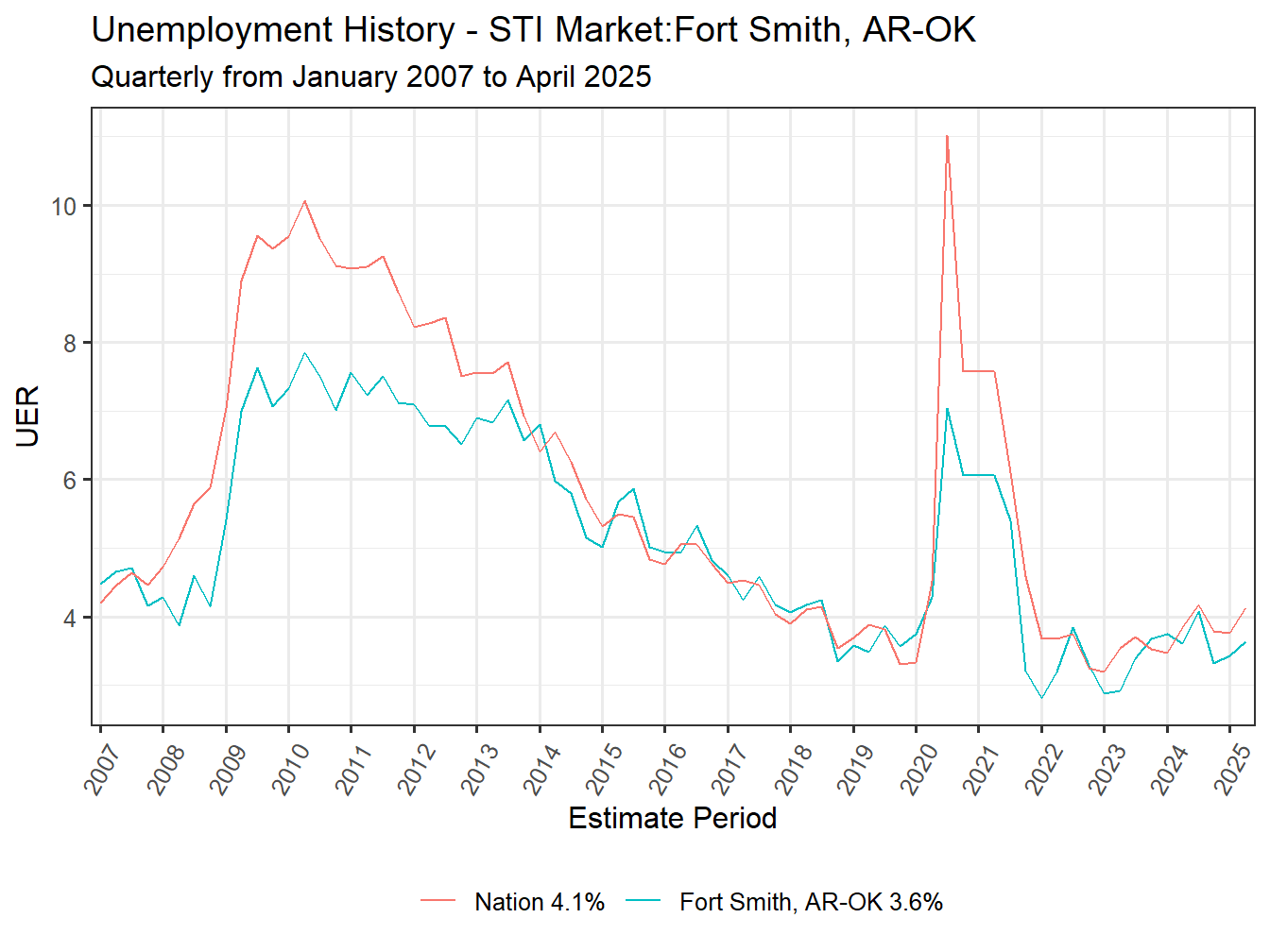 With an Unemployment Rate of 3.6% the Fort Smith, AR-OK currently ranks 108th in Unemployment among the 167 STI Markets.