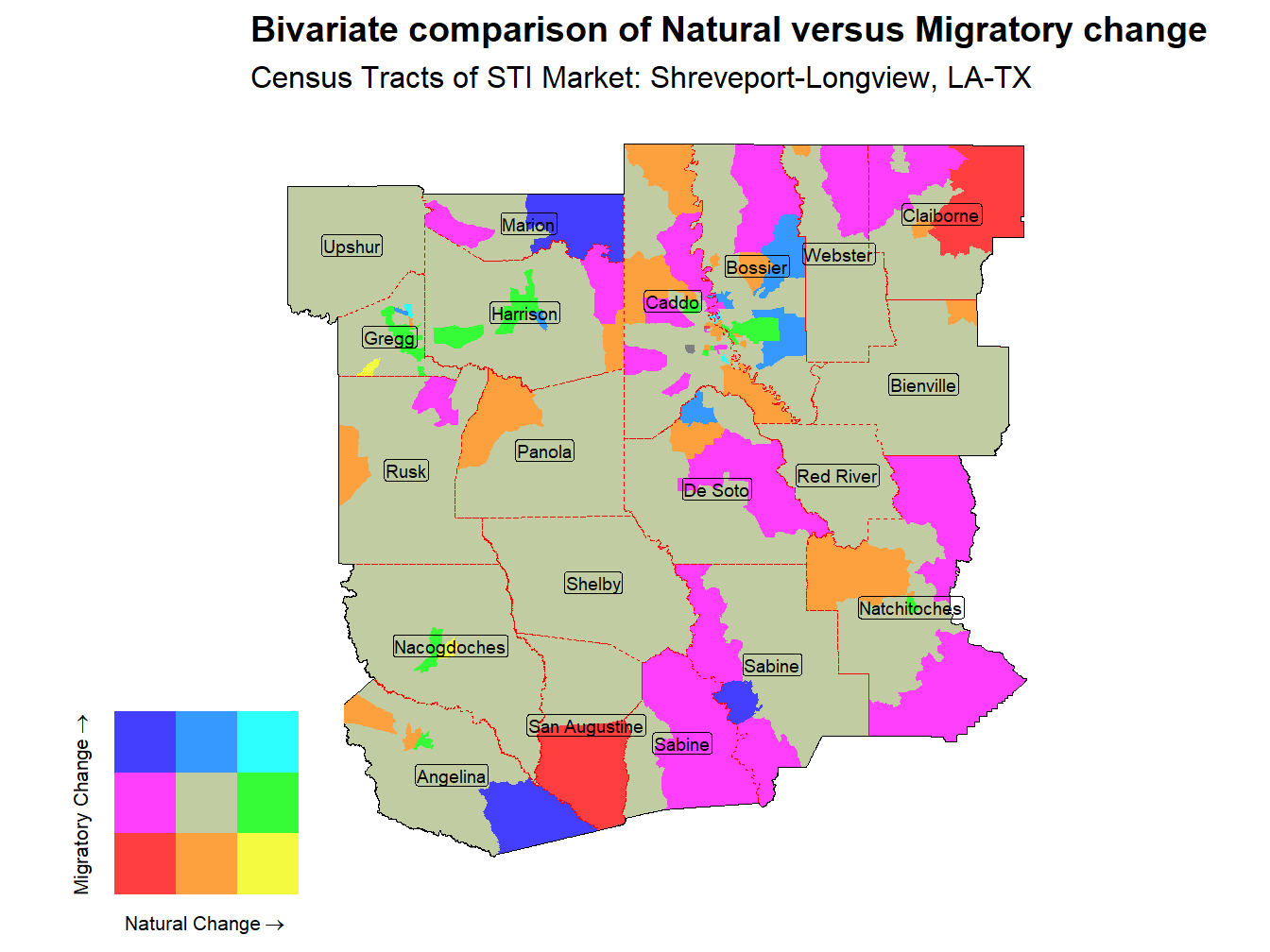 Figure 4: Bivariate Thematic Map of Natural versus Migratory change