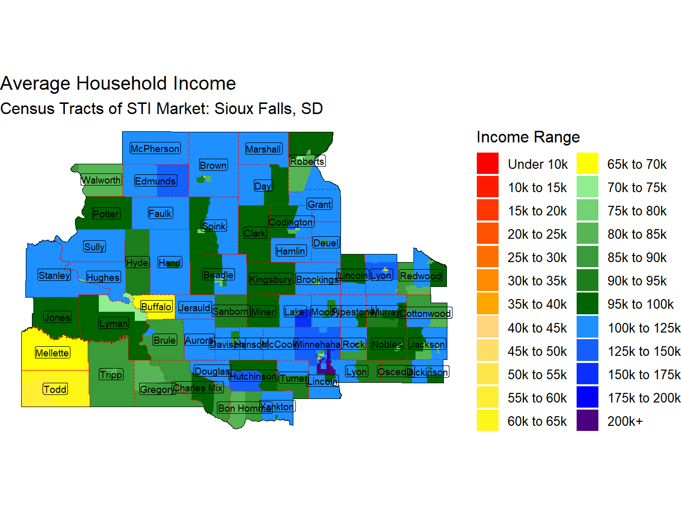 With an Average Household Income for those head of householders Non-Hispanic White of $109,113 the Sioux Falls, SD market ranks 76th across STI Markets.