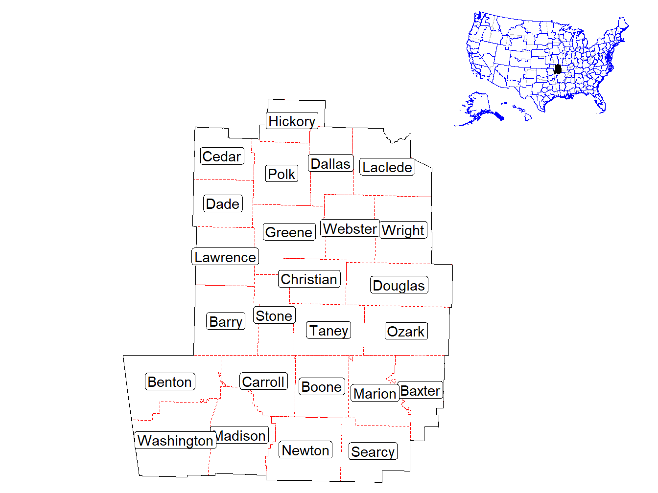 The reports in this book focus on the STI: Market Springfield-Fayetteville, MO-AR, Market ID: M072. This market is made up of the following counties and county equivalent areas.