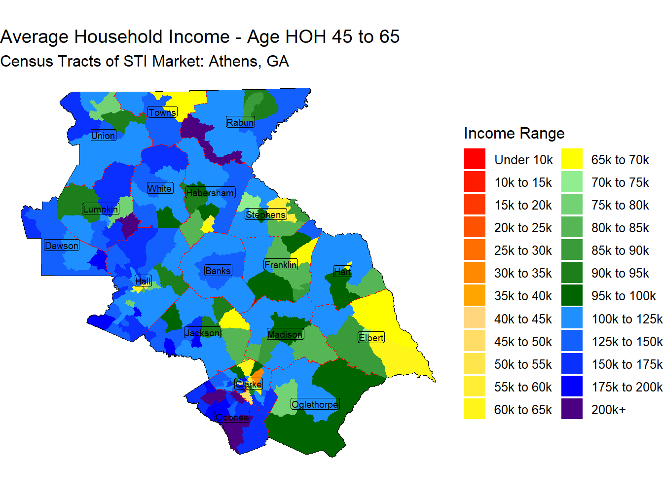 With an Average Household Income for those head of householders Non-Hispanic White of $109,274 the Athens, GA market ranks 75th across STI Markets.