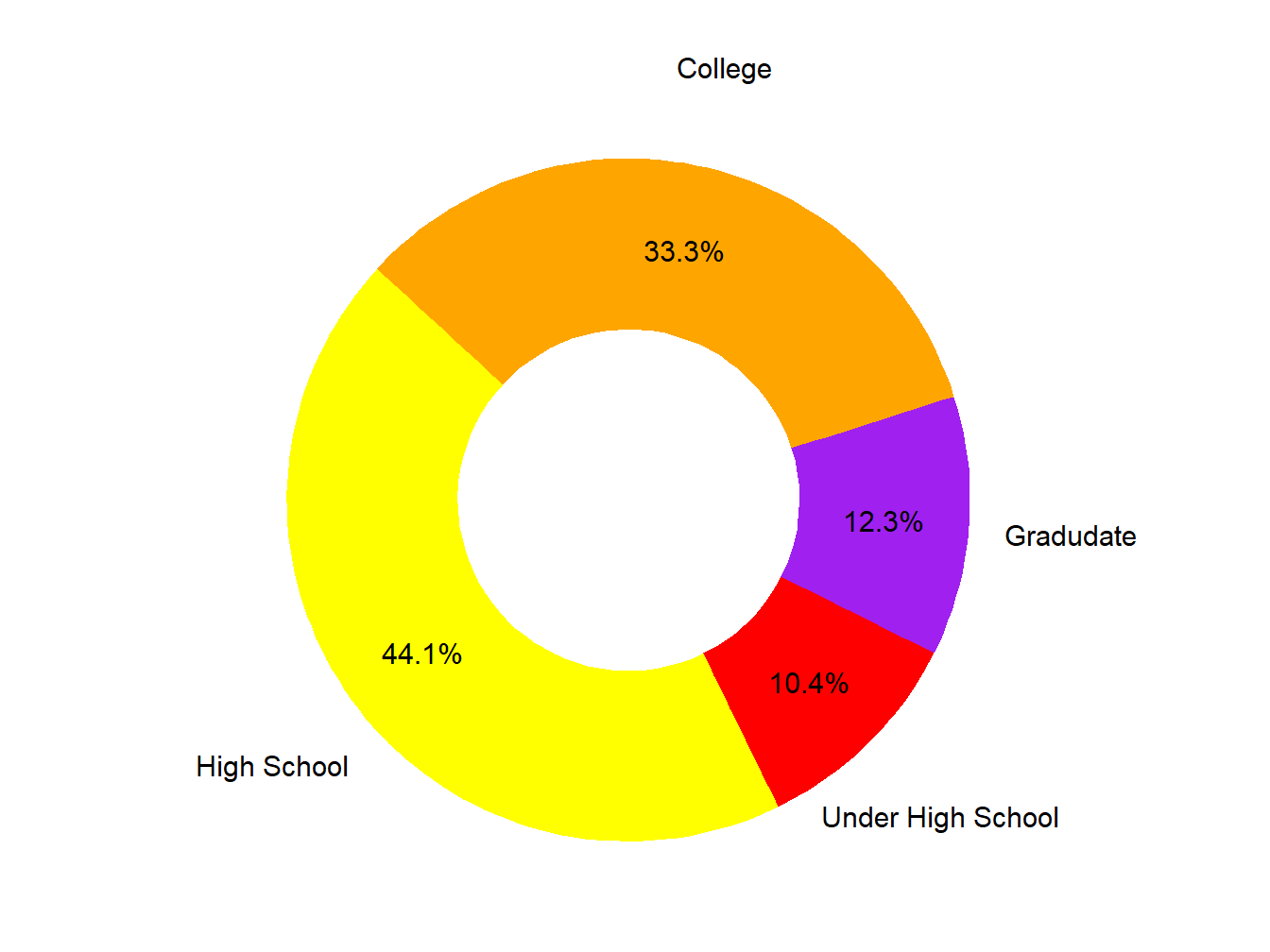 College here includes those with Associate and Bachelor degrees. While Graduate includes those with Masters degrees, Professional degrees, and Doctorates.