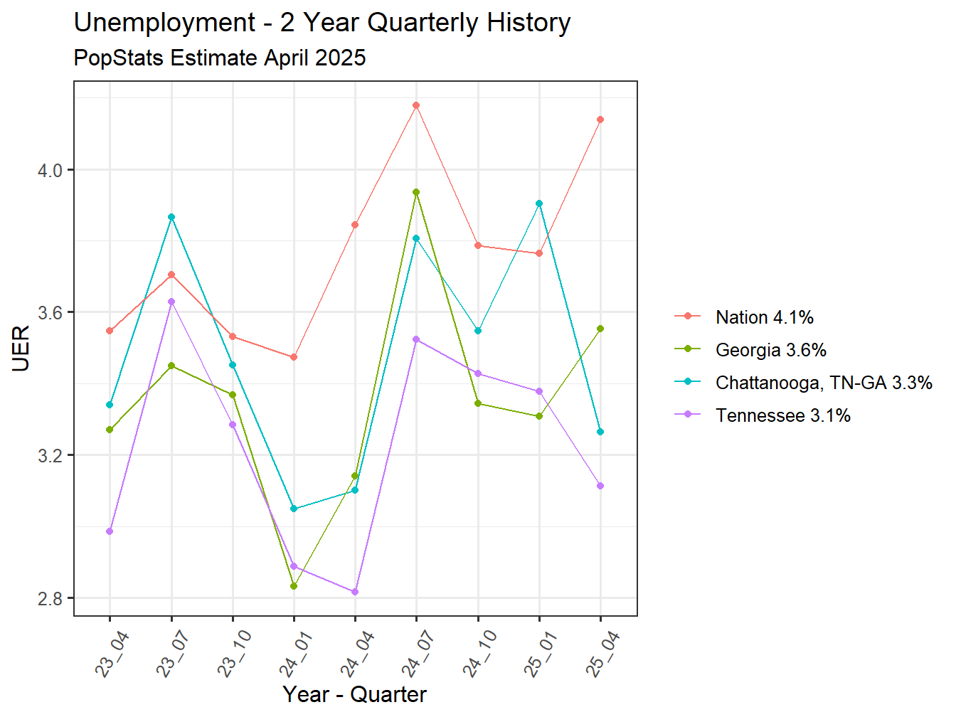 With an Unemployment Rate of 3.3% the Chattanooga, TN-GA currently ranks 141st in Unemployment among the 167 STI Markets.