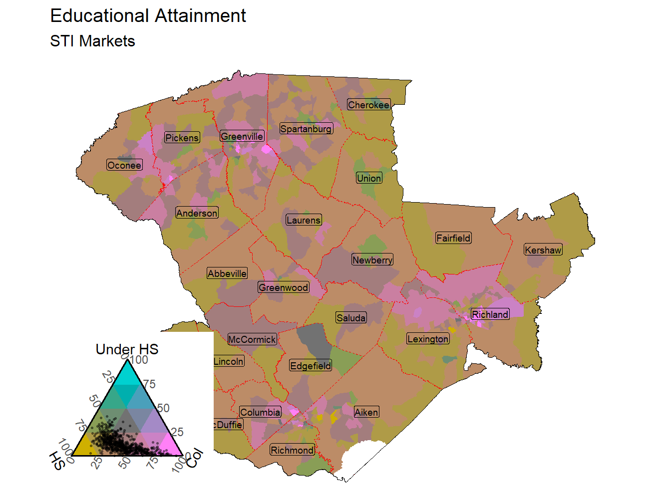 The Columbia-Greenville-Augusta, SC-GA market ranks 74th in Educational Attainment across the 167 STI Markets.