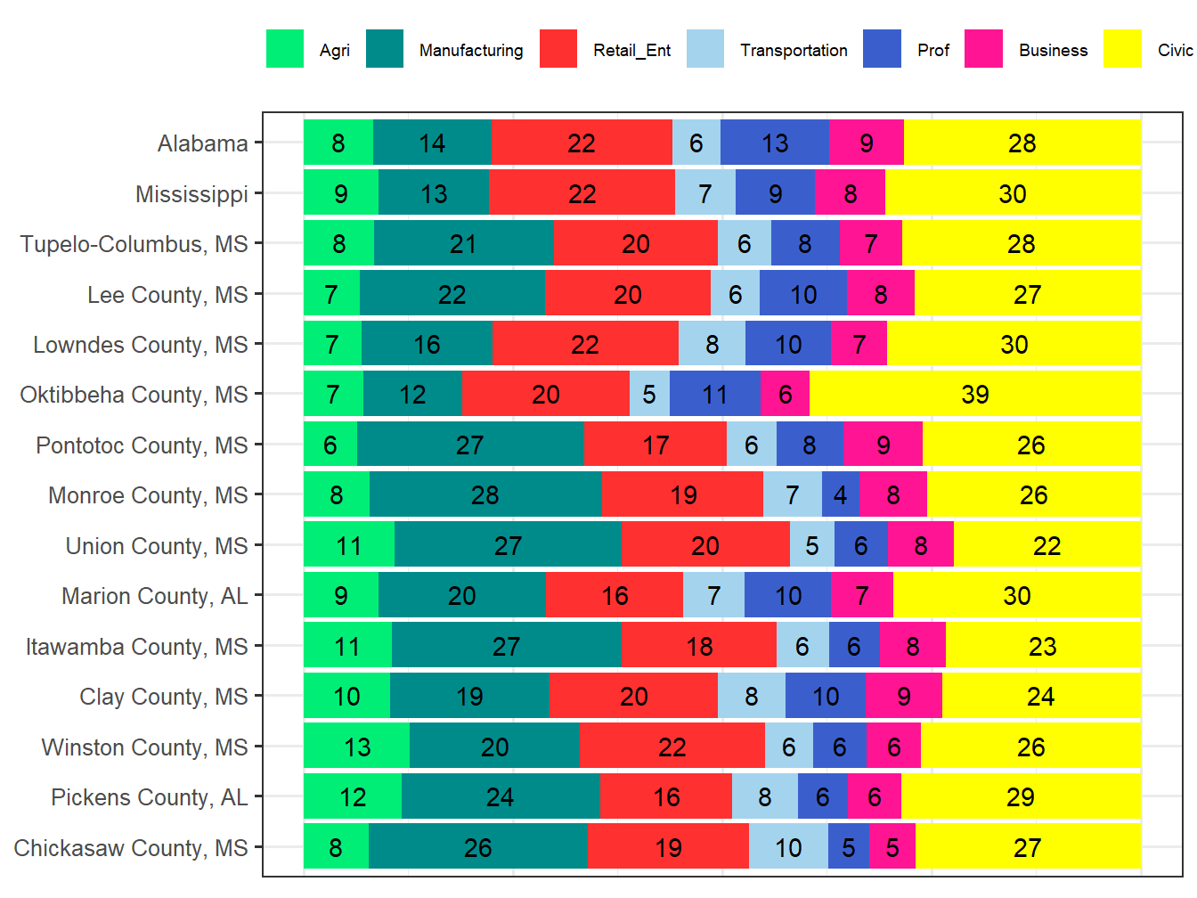 The proportion of employment in the Manufacturing industry in the Tupelo-Columbus, MS Market is notable. This industry comprises 21.4% of the market’s employment, yielding a location quotient of 2.16 time the national average. Subsequently the Tupelo-Columbus, MS Market ranks 4th in the proportion of Manufacturing employment across STI Markets.