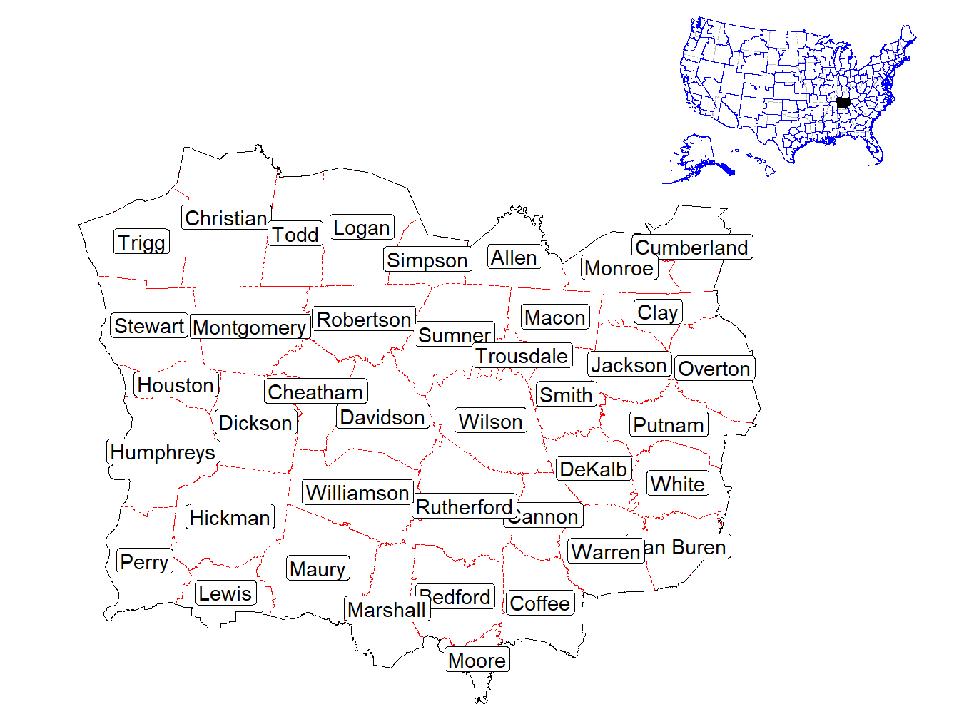 The reports in this book focus on the STI: Market Nashville-Hopkinsville, TN-KY, Market ID: M104. This market is made up of the following counties and county equivalent areas.