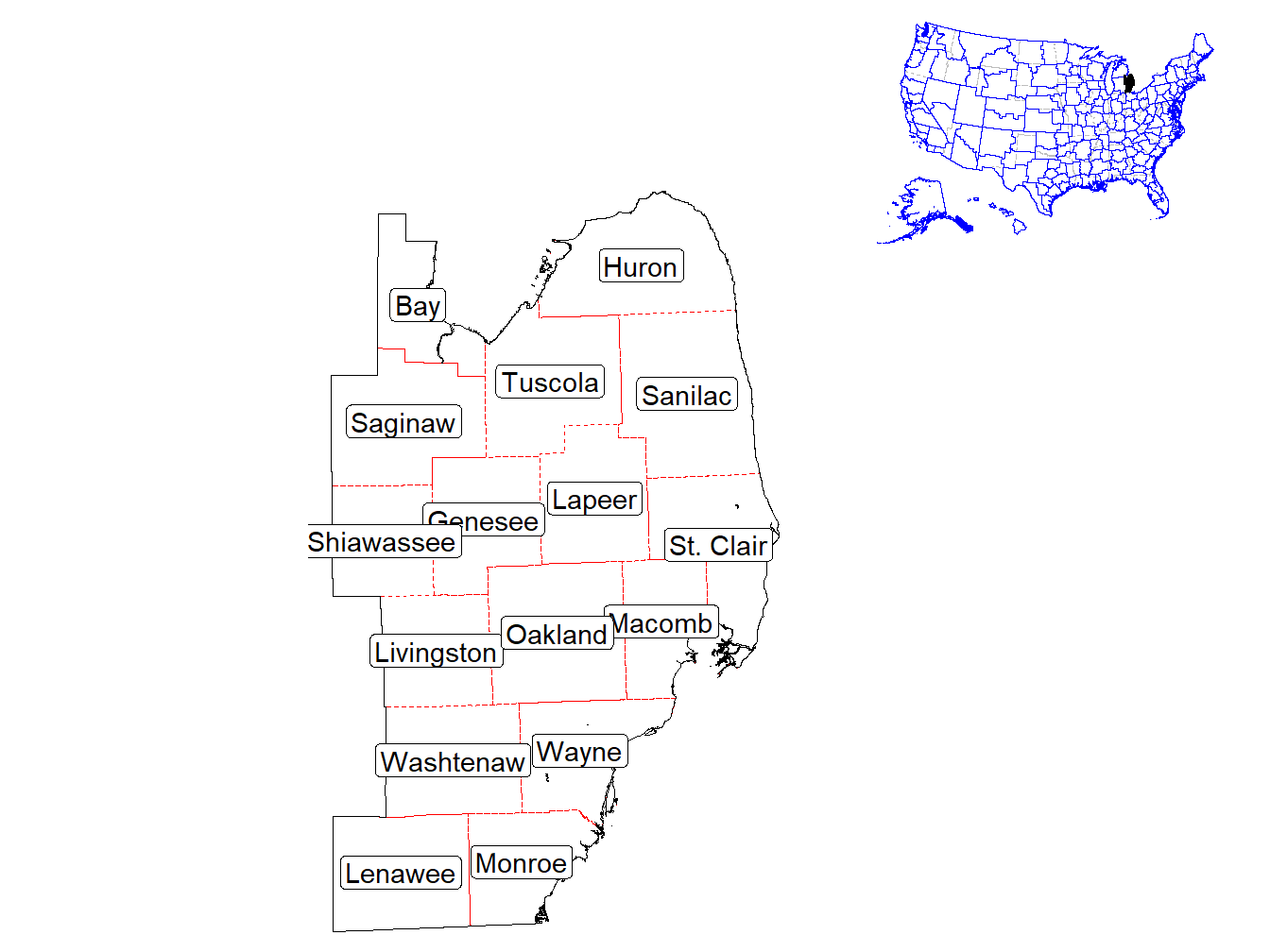 The reports in this book focus on the STI: Market Detroit-Flint, MI, Market ID: M120. This market is made up of the following counties and county equivalent areas.