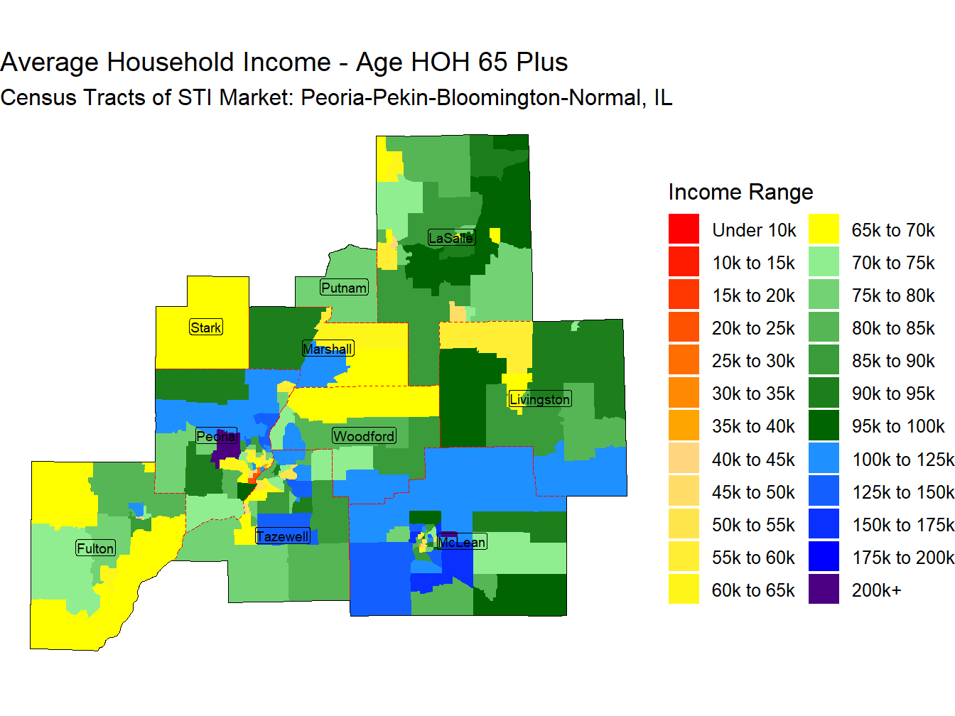 With a Median Household Income of $79,021 the Peoria-Pekin-Bloomington-Normal, IL Market ranks 78th across STI Markets.