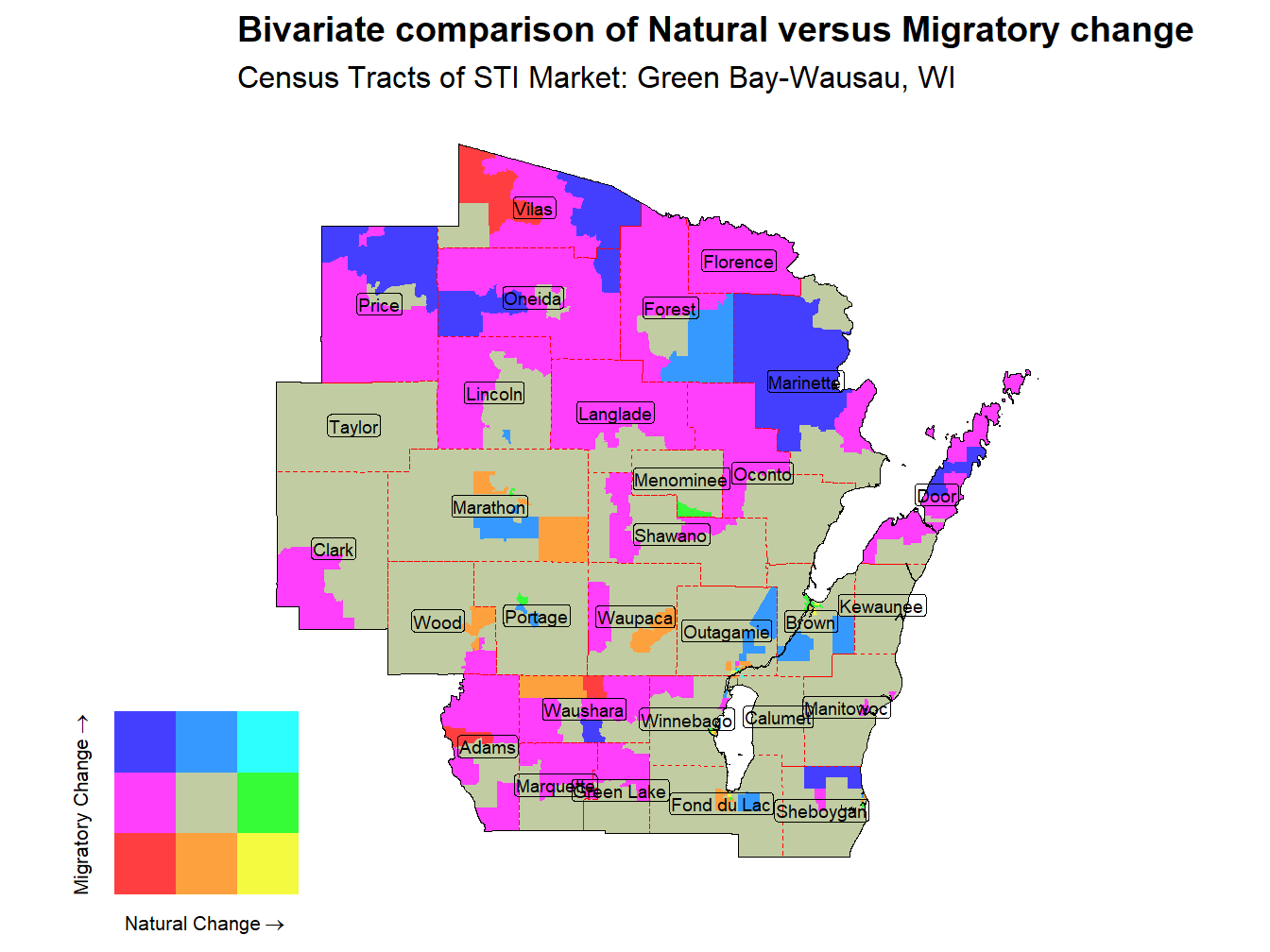 Figure 4: Bivariate Thematic Map of Natural versus Migratory change