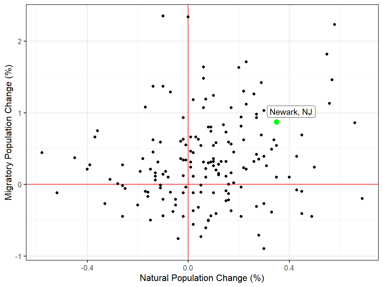 With a 2 Year Compound Annual Growth Rate (CAGR) of 1.24% the Newark, NJ Market is growing. It ranks 26th in 2 year population change across all STI Markets.