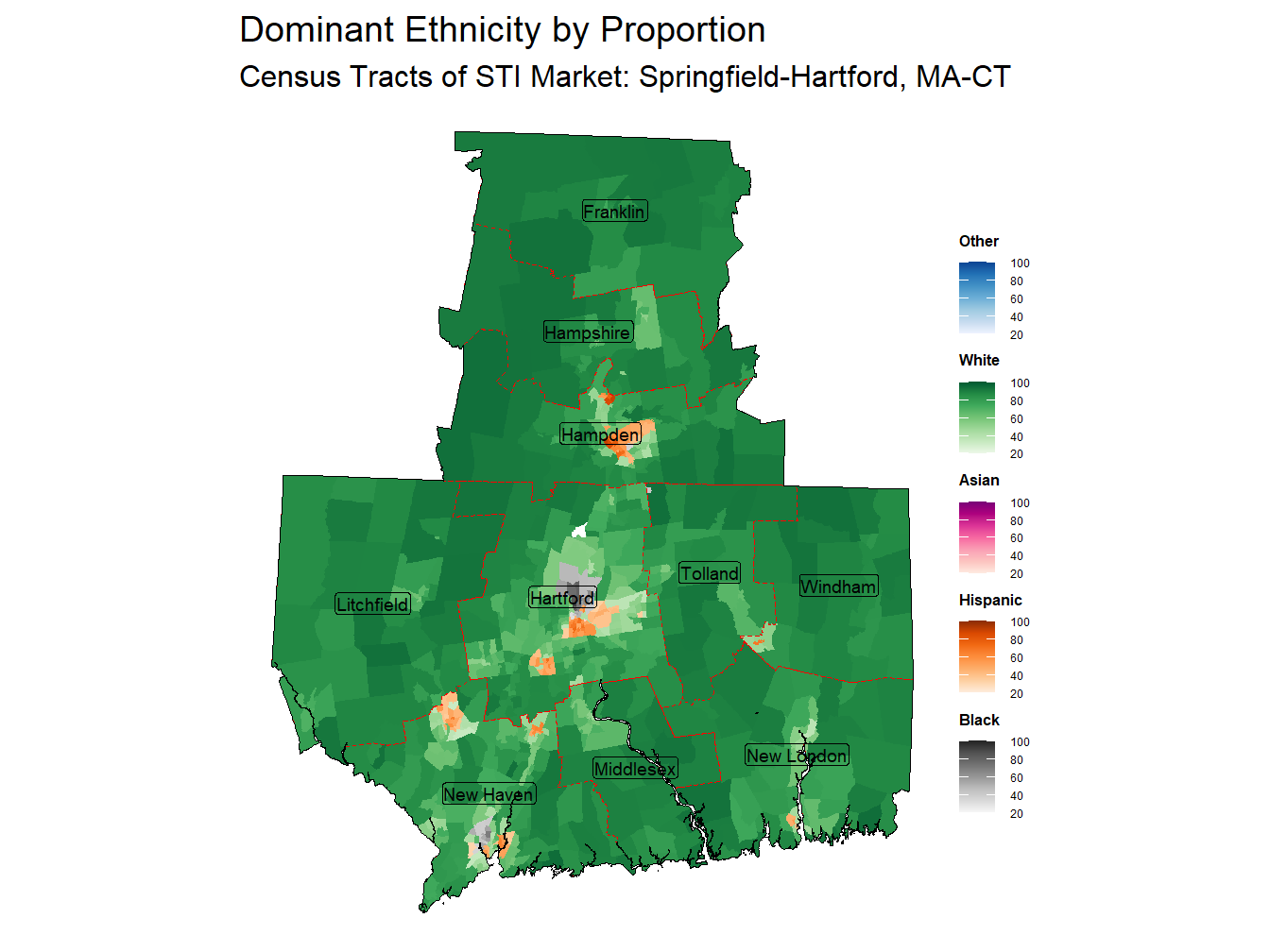 Cultural identity of an area is often the product of the population’s Ethnicity, Ancestry, Language, and Religious Beliefs. This report will cover these areas for the Springfield-Hartford, MA-CT Market.