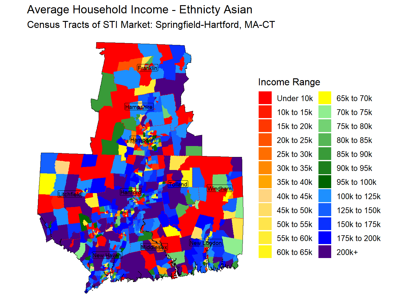With an Average Household Income for those head of householders identifying as Non-Hispanic Asian of $143,951 the Springfield-Hartford, MA-CT market ranks 30th across STI Markets.