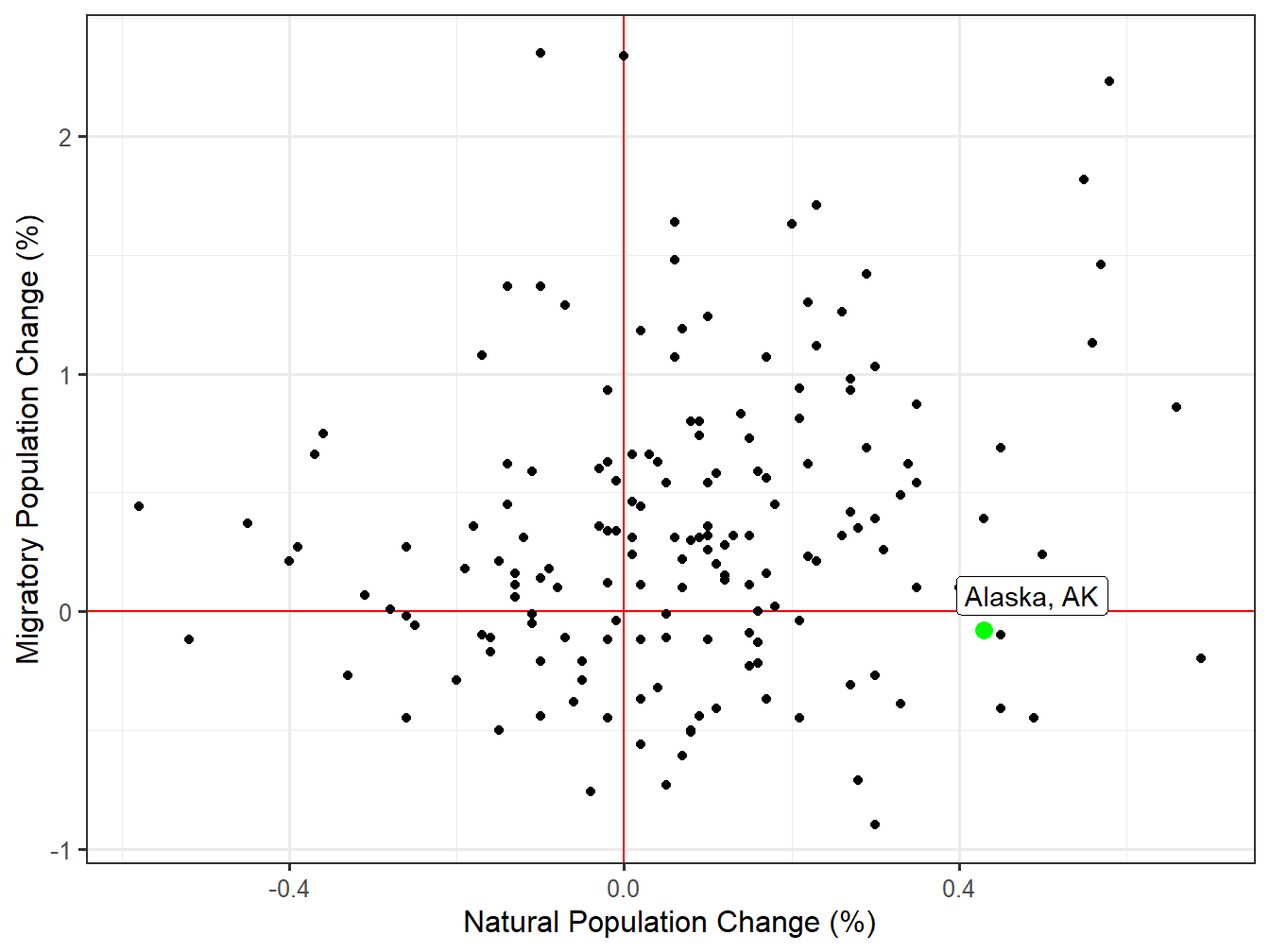 With a 2 Year Compound Annual Growth Rate (CAGR) of 0.4% the Alaska, AK Market is growing. It ranks 87th in 2 year population change across all STI Markets.